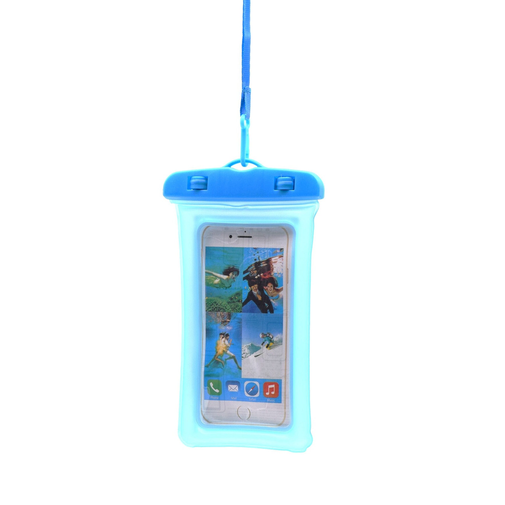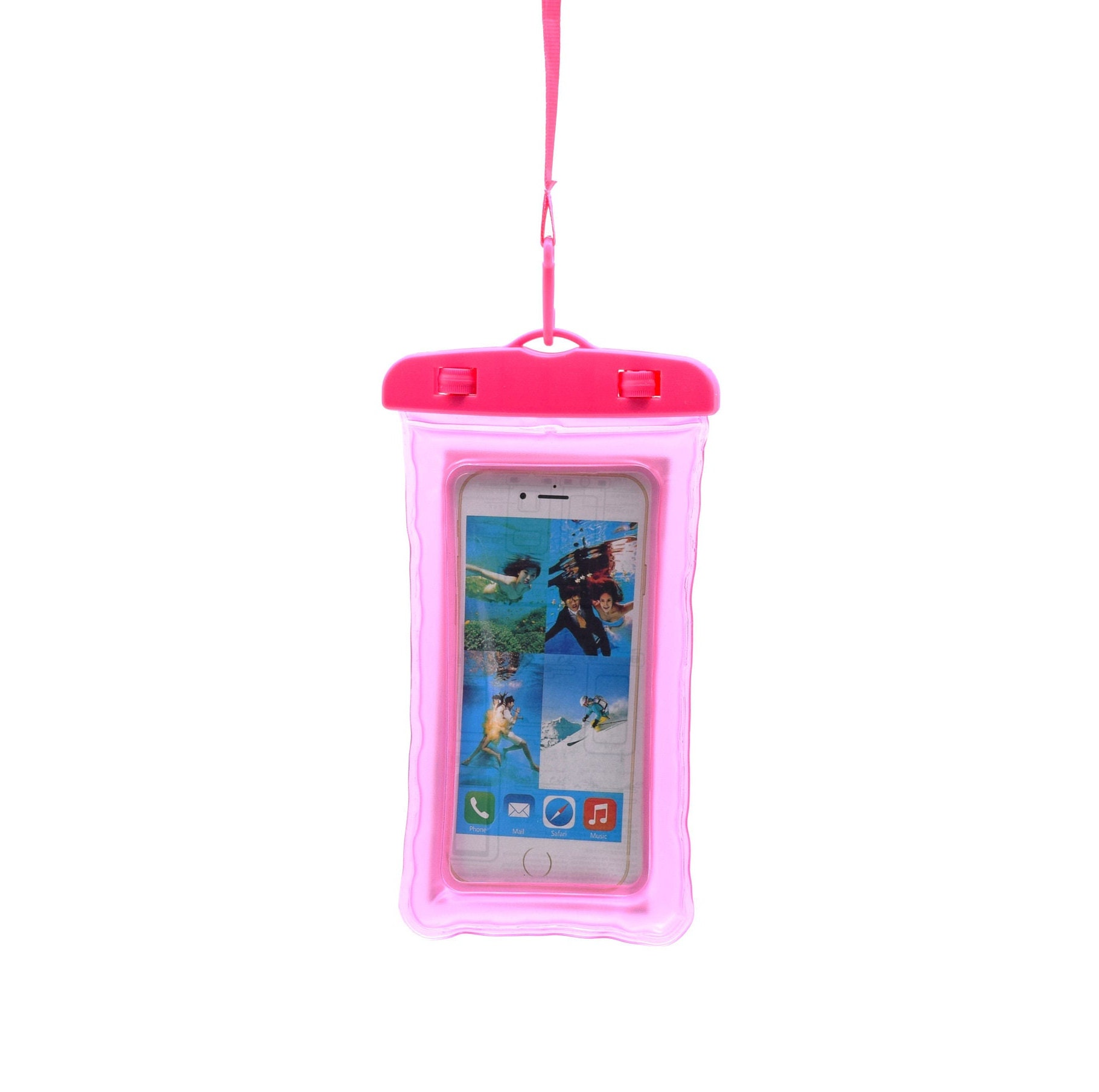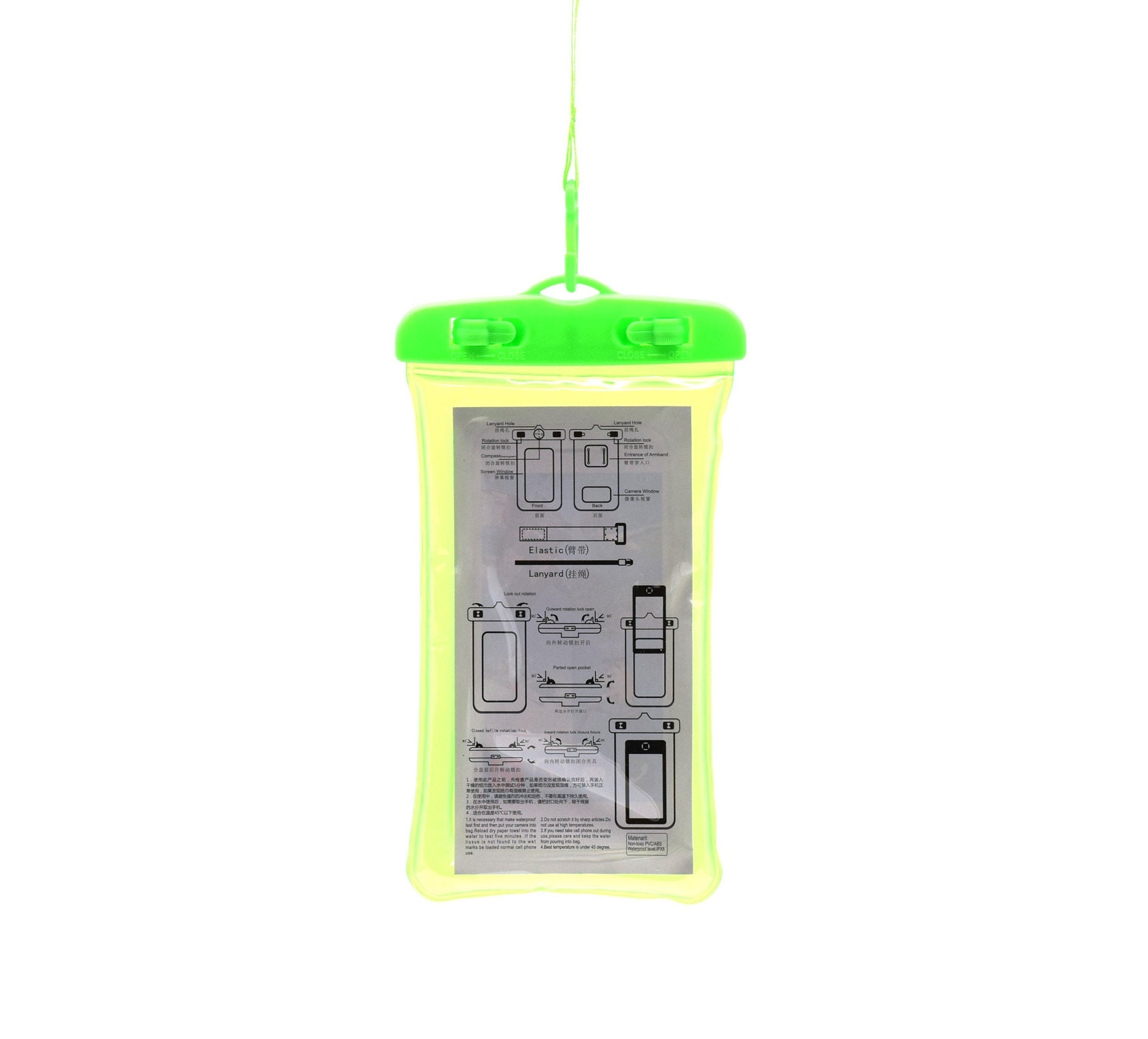 Universal waterproof pouch fits phones up to 7″ tall and 4″ wide, and can also hold essentials like ID, cash, cards, passport, and keys. Clear front and back windows support touch controls and make it easy to take photos and videos. Includes a neck strap for convenient carrying. Test water resistance before use and ensure the seal is fully closed before placing it in water.